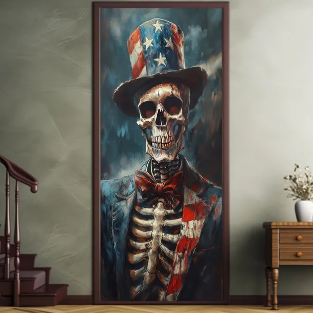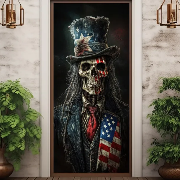 Halloween Skull Door Decorations Door Covers 4th of July Patriotic Independence Day Backdrop Indoor/Outdoor Door Banner for Front Door Farmhouse