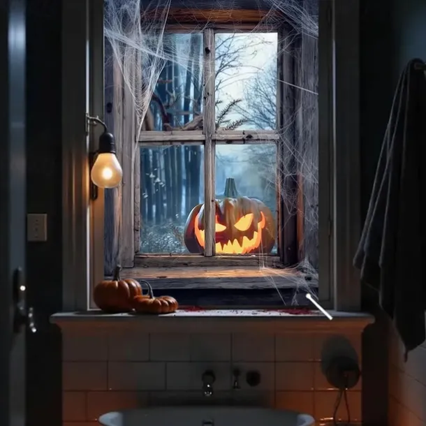 Halloween Window Cover Decorations, Fabric Cute Ghost Candle Halloween Curtain Horror Movie Poster Window Door Covering Decor for Haunted House, Scary Halloween Window Clings Decals Indoor Outdoor