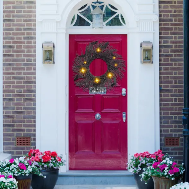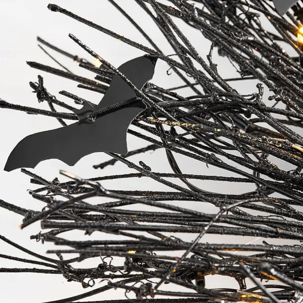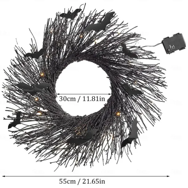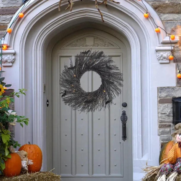 Halloween Wreath with Lights, Lighted Garland, Halloween Wreaths for Front Door,Black Bat for Front Door Outdoor Decorations Spooky Glitter Home Party Props Decor