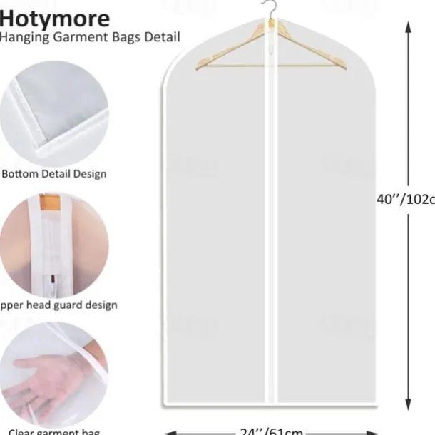 Hanging Garment Bags Clear (24X40 inch/ 5Pcs) Lightweight Clear Suit Bag Full Zipper Dust-Proof Clothes Cover Bags Hanging Garment Bags for Clothes with Closet Storage and Travel