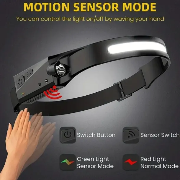 - Wave sensor switch: The headlight adopts the latest intelligent sensor system, you need to turn on the light switch and then turn on the sensor switch, and then gently wave your hand next to the sensor to control the light on and off.