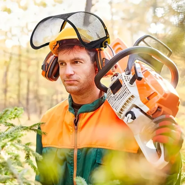 Heavy-Duty Industrial Safety Mask with Impact-Resistant Face Shield Adjustable Headband & Washable Sweatband – for Grinding, Construction, Workshop, Gardening – Compatible with Chainsaws, Hedge Trim
