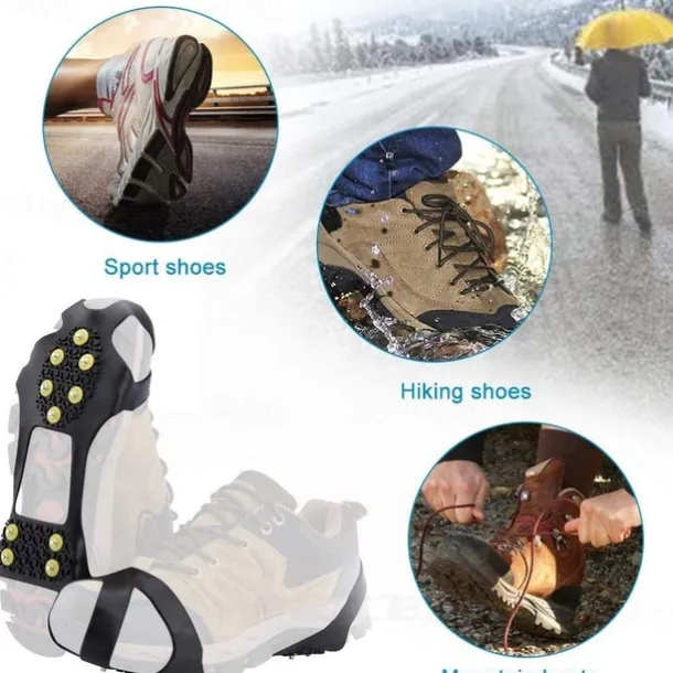 – Essential for Outdoor Activities: These ice grips are a must-have for all outdoor enthusiasts, especially in the four seasons. They minimize the risk of injuries from slipping and falling on ice, snow, mud, wet grass, or other poor conditions. These are perfect for outdoor walking, climbing, hiking, ice fishing, and more. Additionally, they are ideal for use in snow and ice in the city, and even for the elderly and children to use.