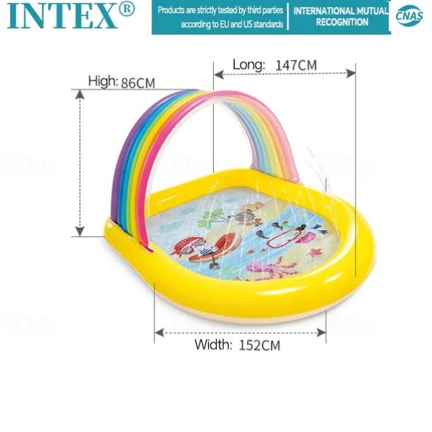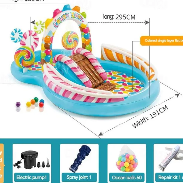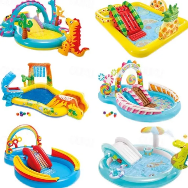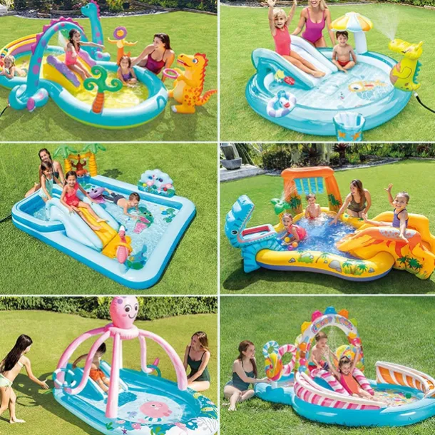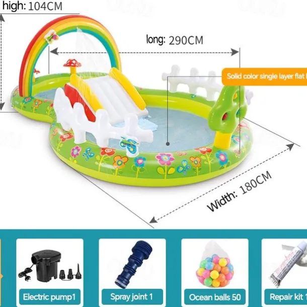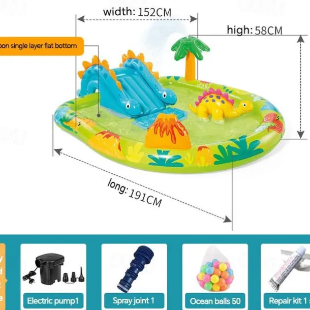 Inflatable Dinosaur Play Center Outdoor Playhouse Inflatable Water Park with Kid Pool Slide, Water Sprayer, Waterfall, and 6 Balls, Multicolor