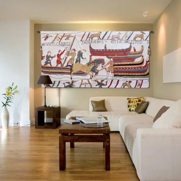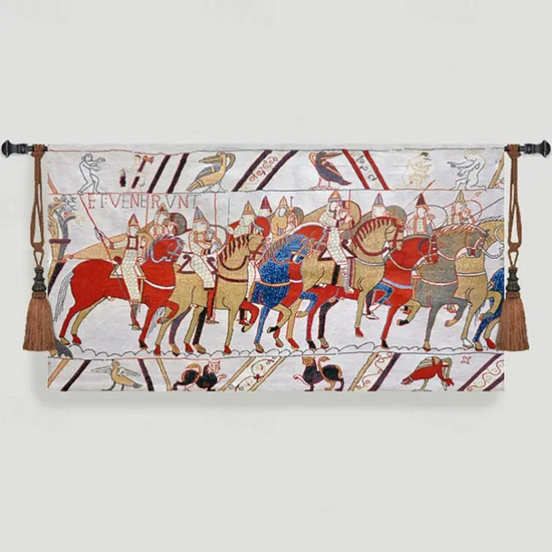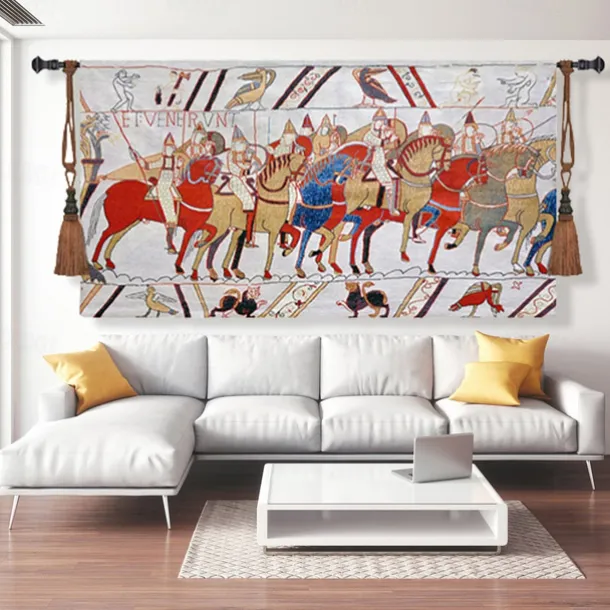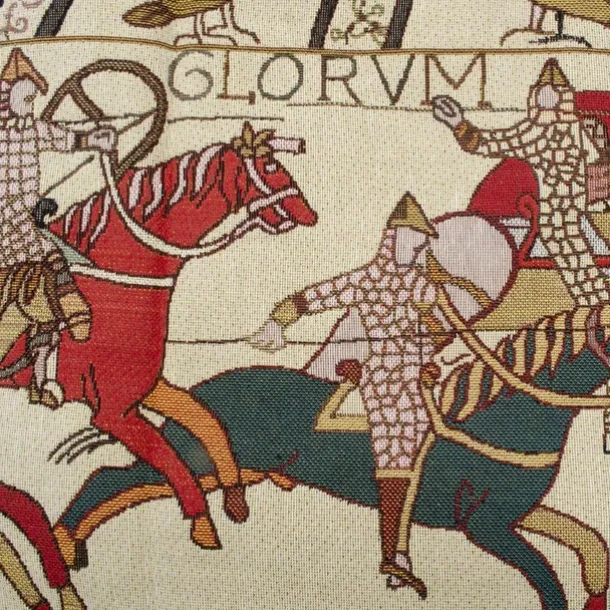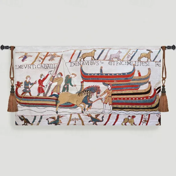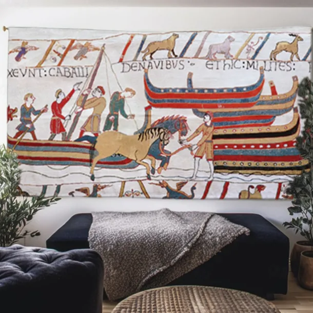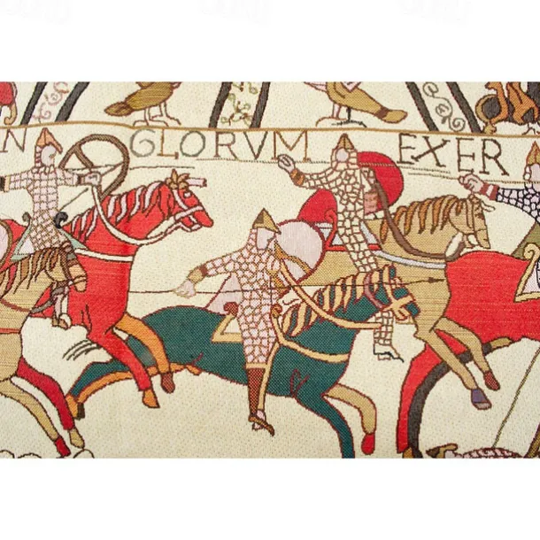 The tapestry is famous for its narrative quality, showcasing over 70 scenes with Latin inscriptions that provide a commentary on the depicted events. It features more than 600 human figures, as well as numerous animals, ships, and buildings, all meticulously crafted to provide a visual account of the historical events.
