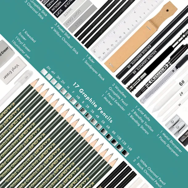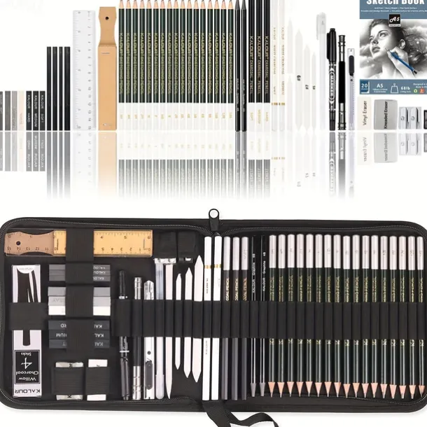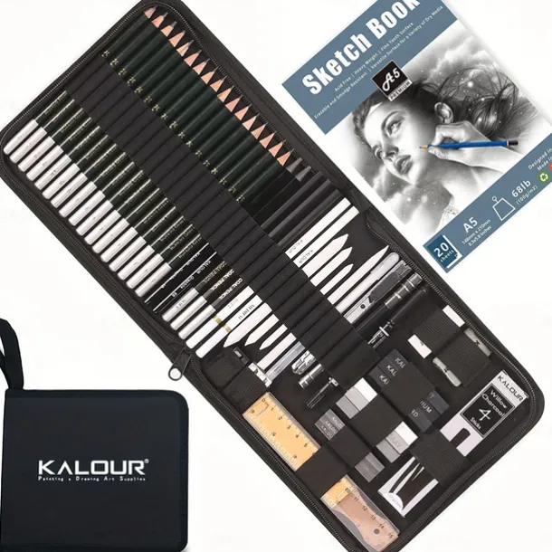 KALOUR 54-Pack Sketch Drawing Pencils Kit With SketchbookInclude GraphiteCharcoal Pencils And Artists ToolsPro Art Drawing Supplies For Adults Students Beginnersideal For Sketching Shading
