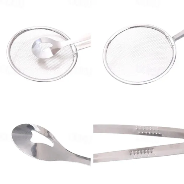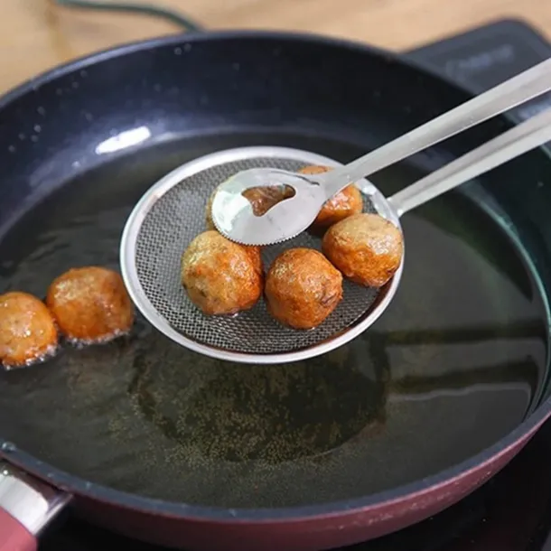 Kitchen 2 In 1 Stainless Steel Fine Mesh Filter Forceps Oil Scoop Oil Filter Filter Clip Filter Clip Fried Food Kitchen Tools
