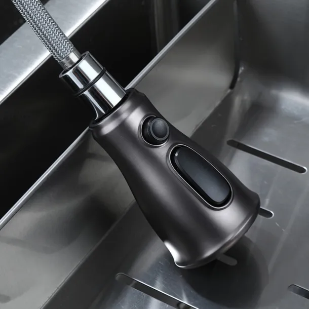 Kitchen Faucet with Pull-out Spray,Single Handle One Hole Brass High Arc 3-Modes Minimalist Style Kitchen Taps(Gun Grey/Black/Chrome)