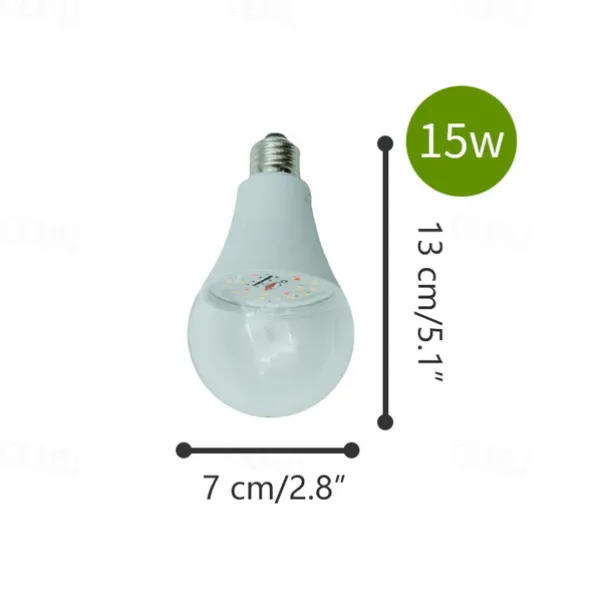 Quantity: 2pcs, LED Beads Quantity: 20, Type: Growing Light Bulb, Wattage (W): 12, 15, Initial Lumens (lm): 1000, Color Temperature (k): 3500, Primary Application: Vegetable Greenhouse, Bulb Shape: A19, Bulb Base: E26,