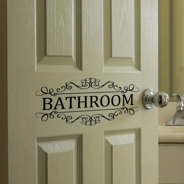 Letter Graphic Wall Sticker, English Logo Bathroom Wall Door Sticker, Removable Wall Decals For Home Bathroom, Home Decor