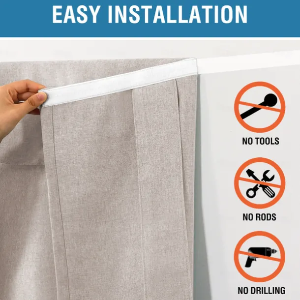 EASY HANGING: Tool free and no curtain rod necessary. Strong stickiness strap is featured on top of each panel. Just stick straps to the door frame and paste the sticky stickers to the straps. Please follow our Installation instruction included in package