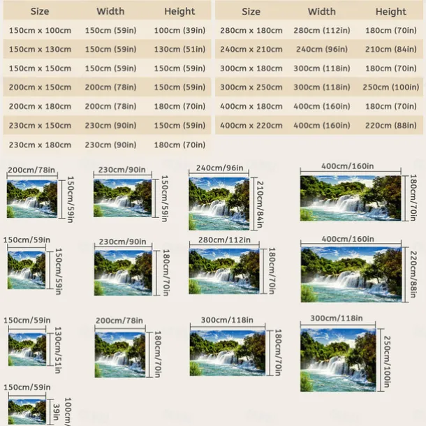 | Size | 150cm * 100cm, 150cm * 130cm, 150cm * 150cm, 200cm * 150cm, 200cm * 180cm, 230cm * 150cm, 230cm * 180cm, 300cm * 180cm |