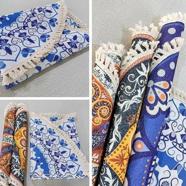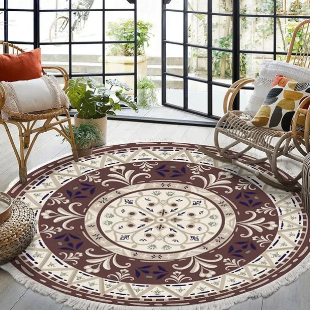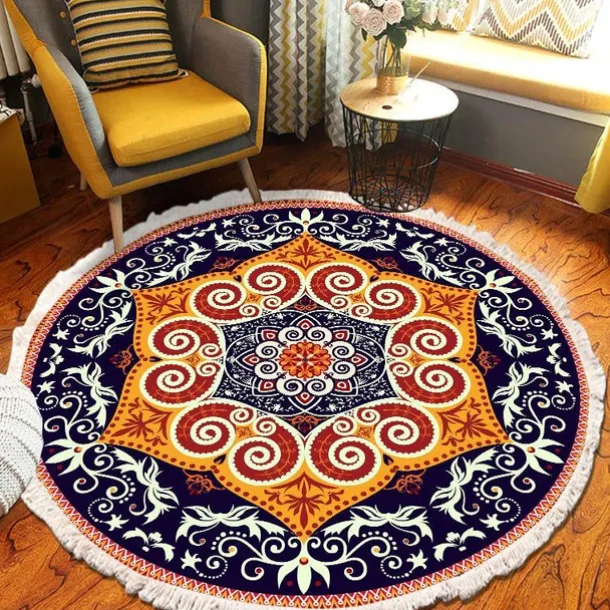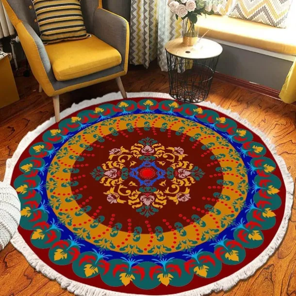- Our round cotton carpet made of woven cotton was made from pure. Tightly woven circular cotton doormat, excellent water absorption, good breathability and durable with tassels.