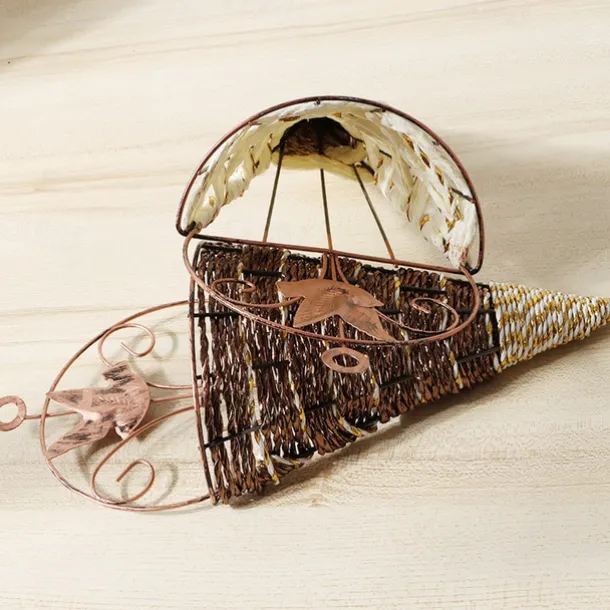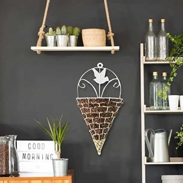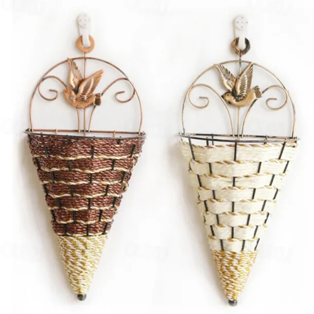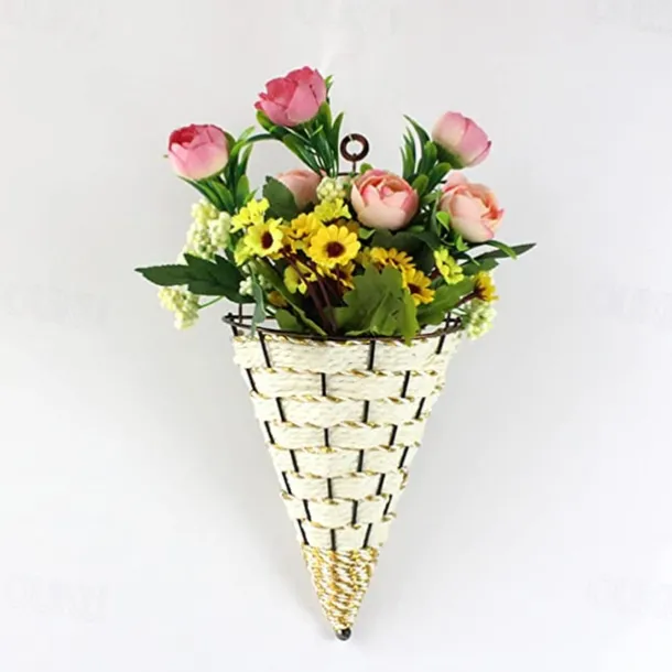 Mental Wall Art Artificial Vase Basket for Flower Arranging Triangle Wall Hanging Iron Rattan Wall Hanging Flower Holder Interior Decoration