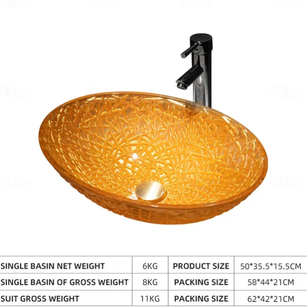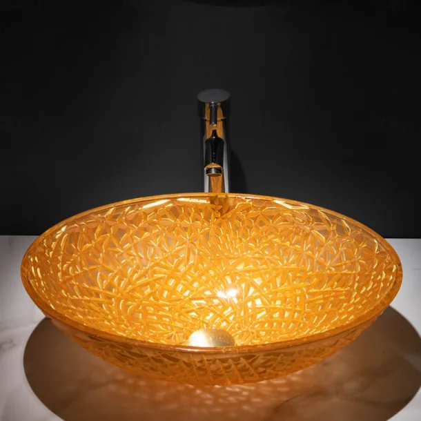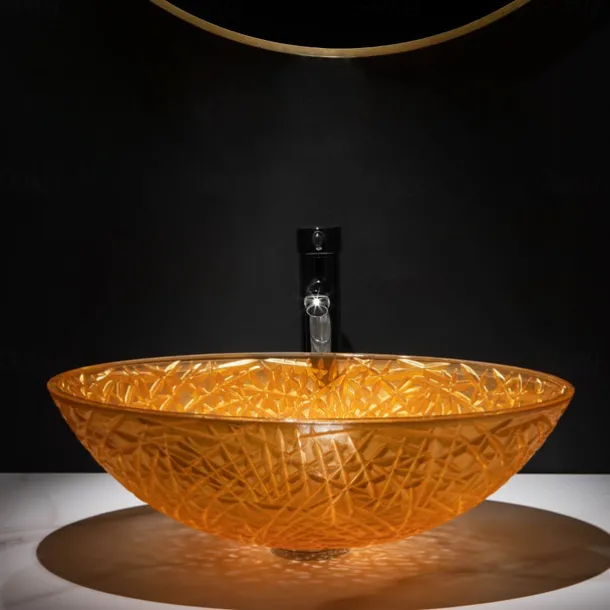 Modern Luxury Art Orange Oval Die Cast Glass Wash Basin With Faucet, Basin Holder And Drain