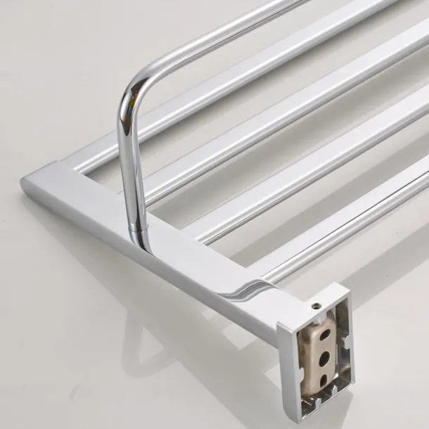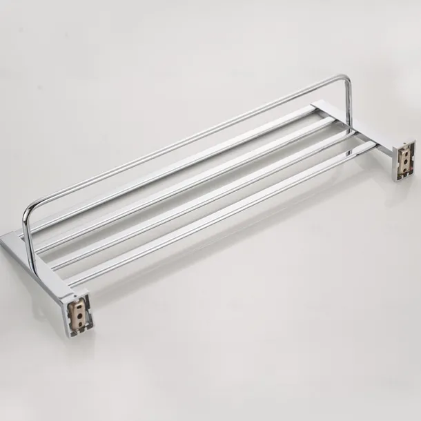 Multifunction Towel Rail Rack Holder Foldable Modern Solid Brass Bathroom Shelf with Hooks Wall Mounted Silvery