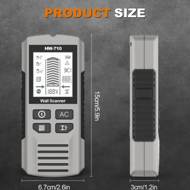 Multifunctional Handheld Metal & Wall Detector, 5 in 1 Stud Finder Scanner, Portable Wire Pipe Power Scanner, LCD Display, Suitable for Detecting Metal, Cables, Wood