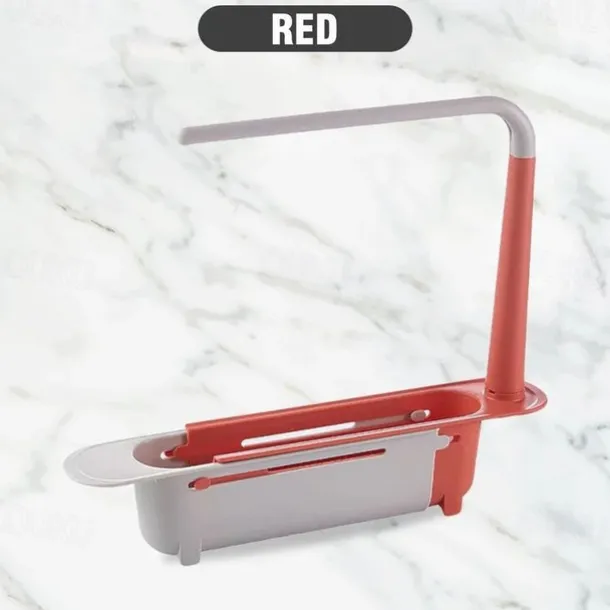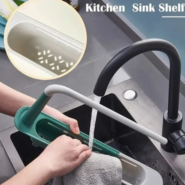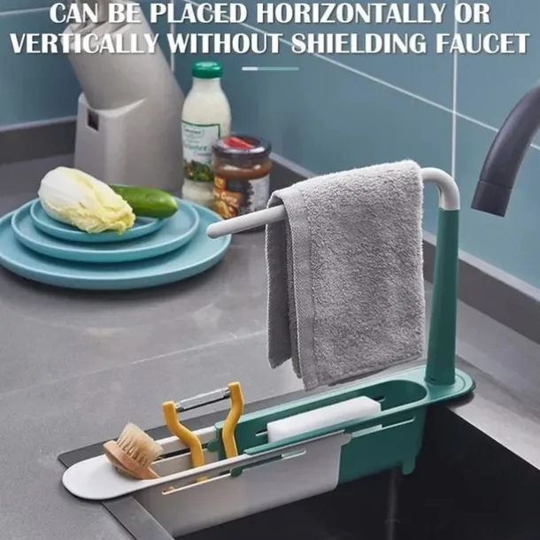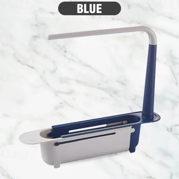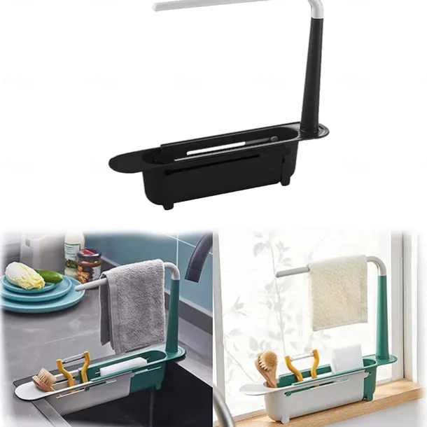 Multifunctional Kitchen Telescopic Rack Adjustable 2-in-1 Sink Organizer, Expandable Sink Basket, Sink Drain Rack, Sink Tray, Sponge Holder+Dish Cloth Hanger Random Color