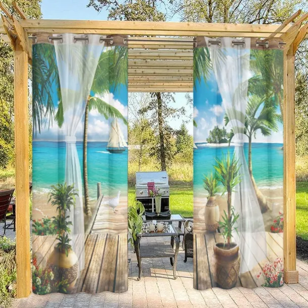 Outdoor Curtain for Patio Waterproof, Home Decor Thermal Insulated Grommet Top Blackout Indoor Outdoor Vertical Blind/Drape for Gazebo, Front Porch, Pergola