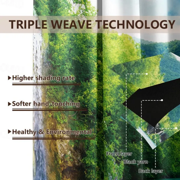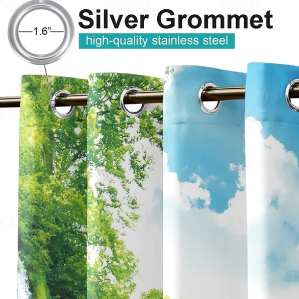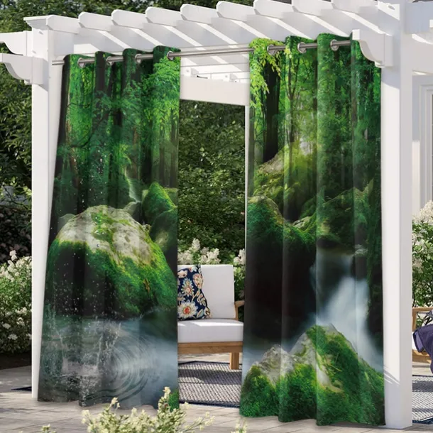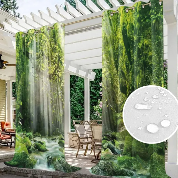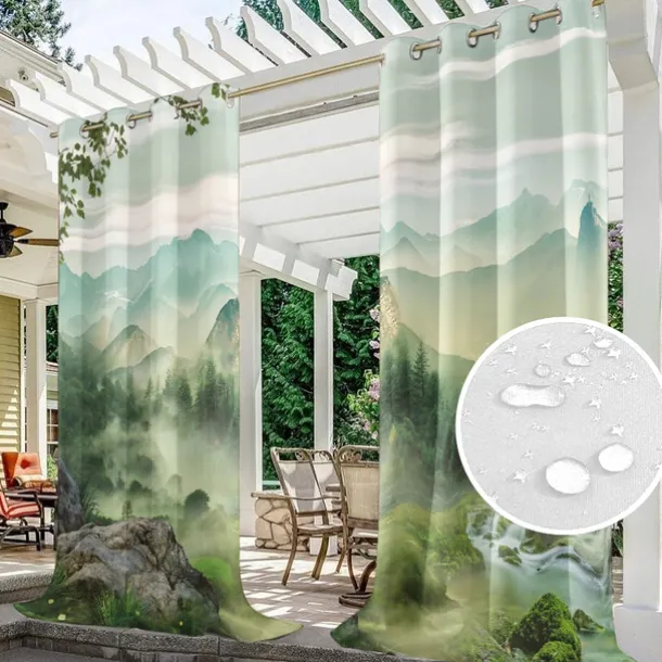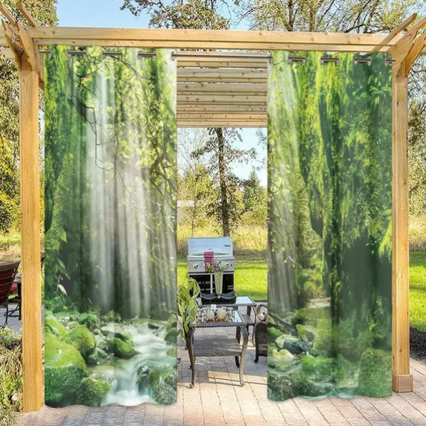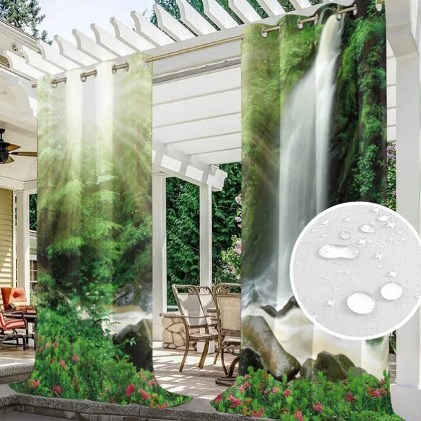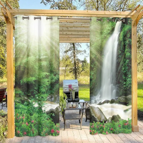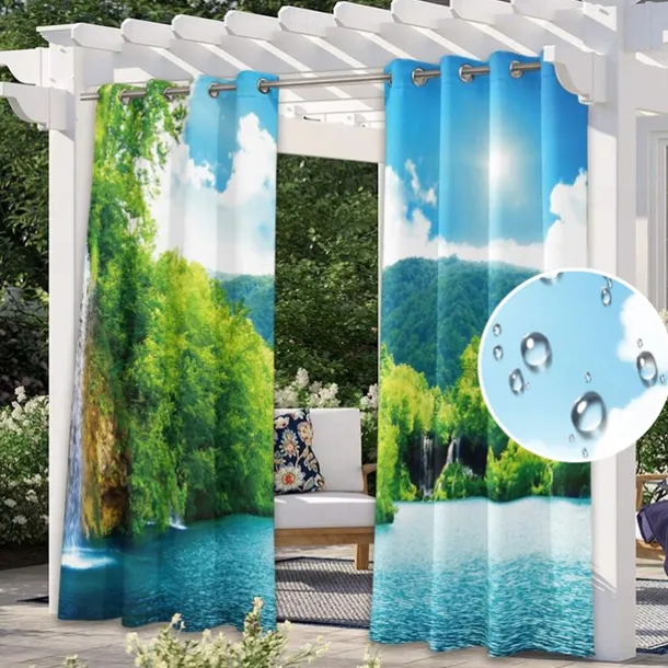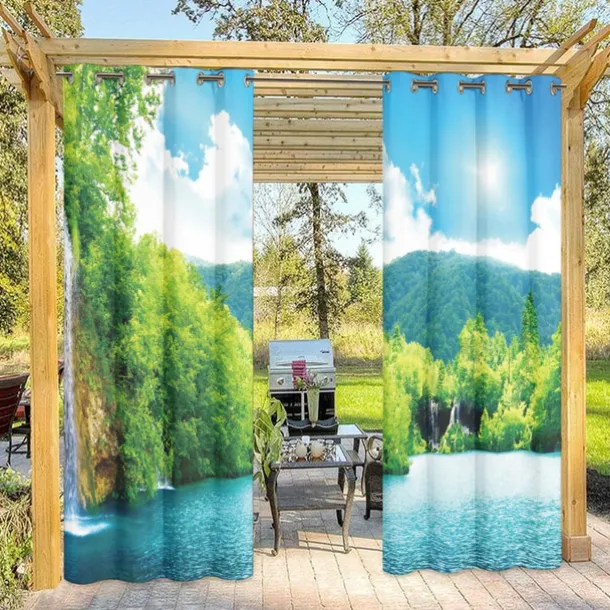 Outdoor Curtains for Patio Waterproof Blackout Outside Deck for Gazebo Pavilion Pergola Arbor Sun Room, 2 Panels, Waterfall River