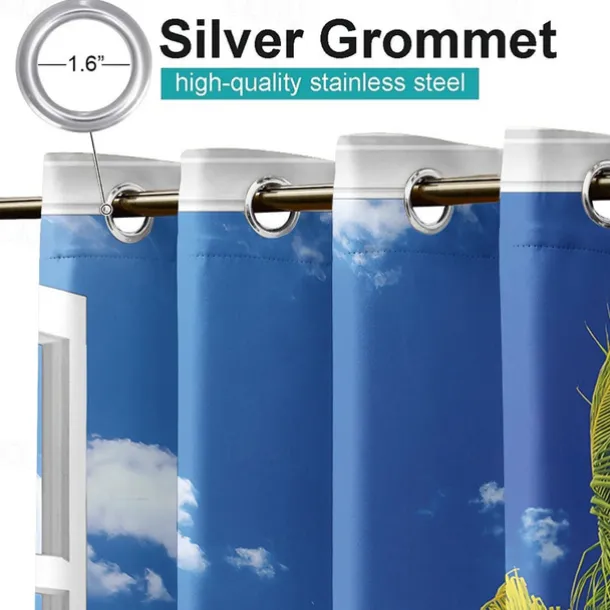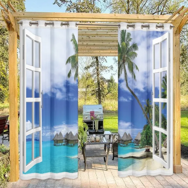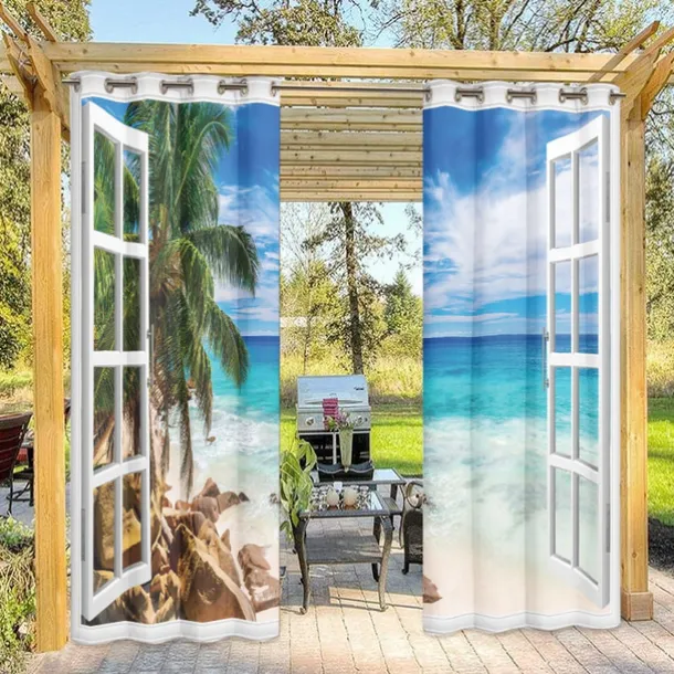 Outdoor Curtains Waterproof Windproof Weatherproof Curtain for Patio, Cabana, Porch, Pergola and Gazebo, Grommet Top Drape, 2 Panels Beach Palm