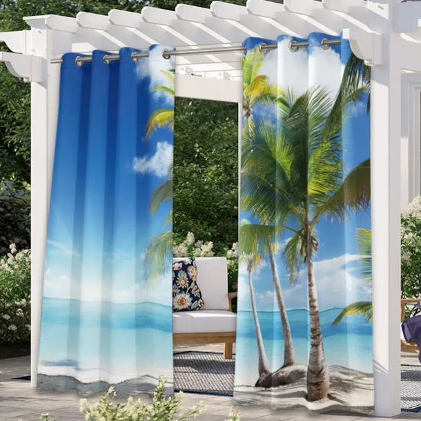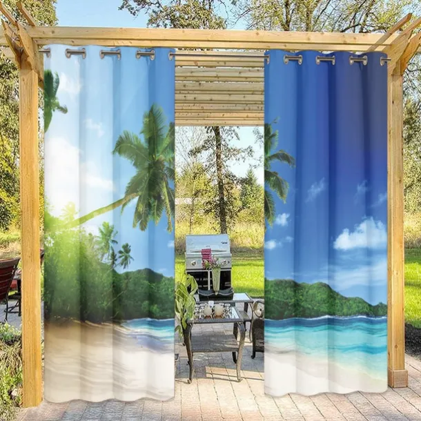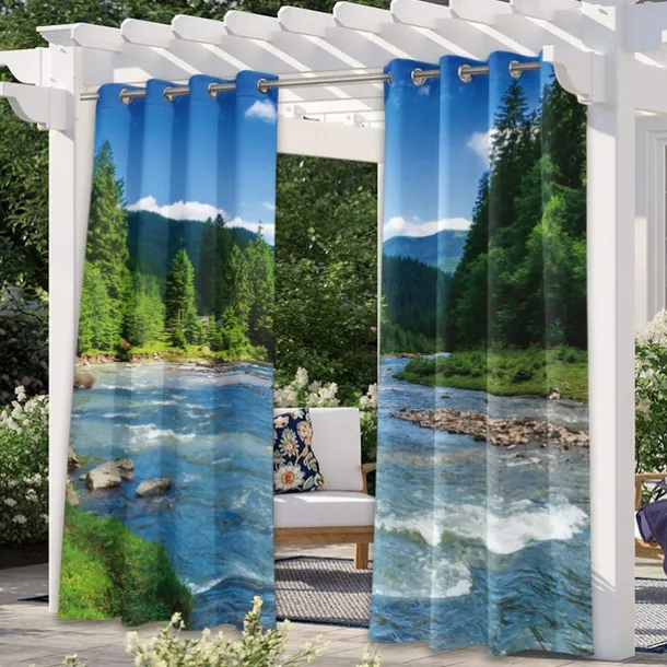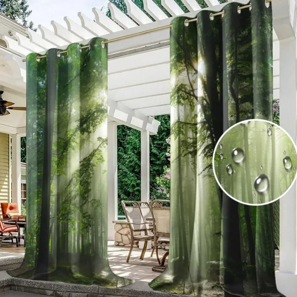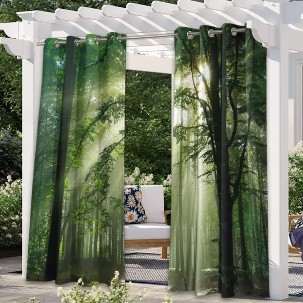 Outdoor Curtains Waterproof Windproof Weatherproof Curtain for Patio, Cabana, Porch, Pergola and Gazebo, Grommet Top Drape, 2 Panels Forest Landscape