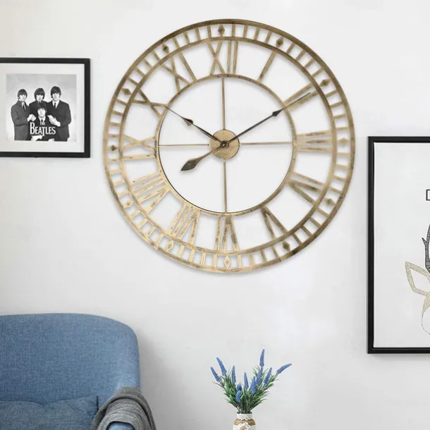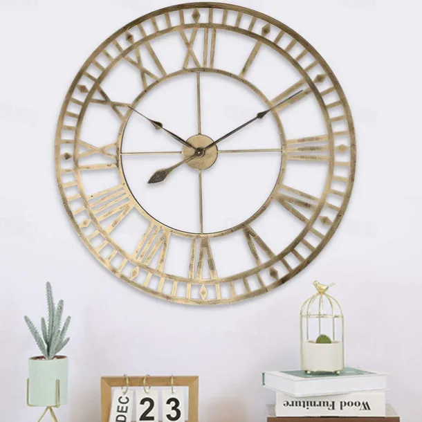 Outdoor Wall Clock Large Roman Numerals Design 3D Decorative Wall Clock Silent Quartz Clock Large Wall Clocks for Living Room Kitchen Outdoor Country House Hallway in Courtyard Loft 40 60 cm