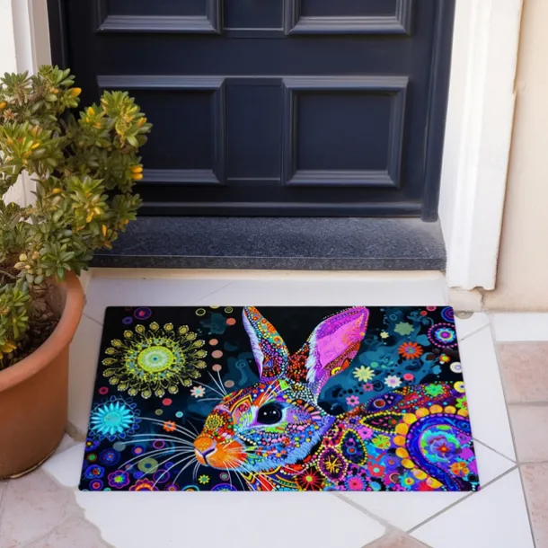 Painting Rabbit Easter Doormat Floor Mats Washable Rugs Kitchen Mat Non-Slip Oil Proof Rug Indoor Outdoor Mat Bedroom Decor Bathroom Mat Entrance Rug