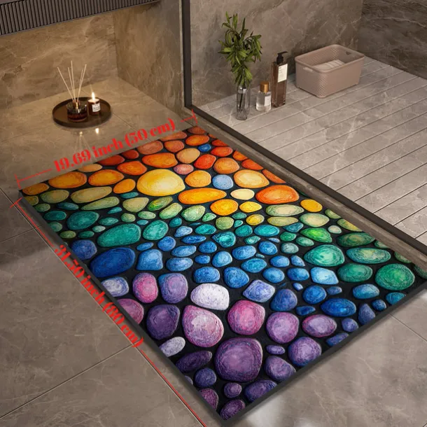 Pebble Bathroom Rug, Polyester Rectangle Door Mat, Super Absorbent, Non-Slip, Easy-to-Clean, Stain-Resistant Bath Mat