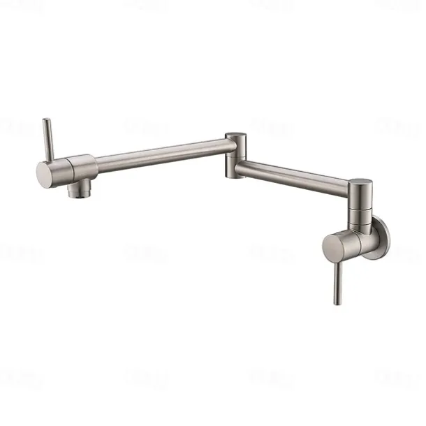 Dual Handle: This wall-mounted kitchen faucet is equipped with dual joints with 360 degree rotation, which is more convenient for controlling water flow rate or turning the water off at either the wall or spout with easy one-handed operation.