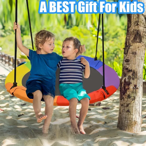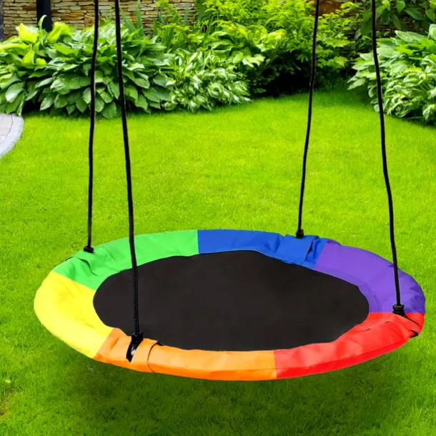Rainbow 40″ Saucer Tree Swing – 700Lb Capacity, Waterproof Oxford Fabric with Adjustable Ropes for Playground & Backyard Fun