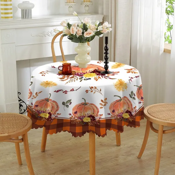 Round Fall Thanksgiving Tablecloth Pumpkin Decorative Holiday Table Cloth Seasonal Dining-Table Cover, Waterproof and Washable Table Cover for Party Kitchen Dining Room Indoor