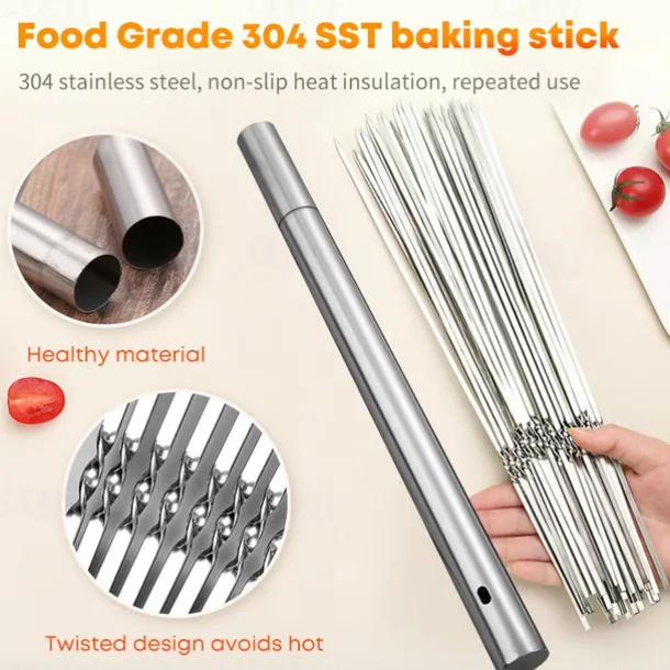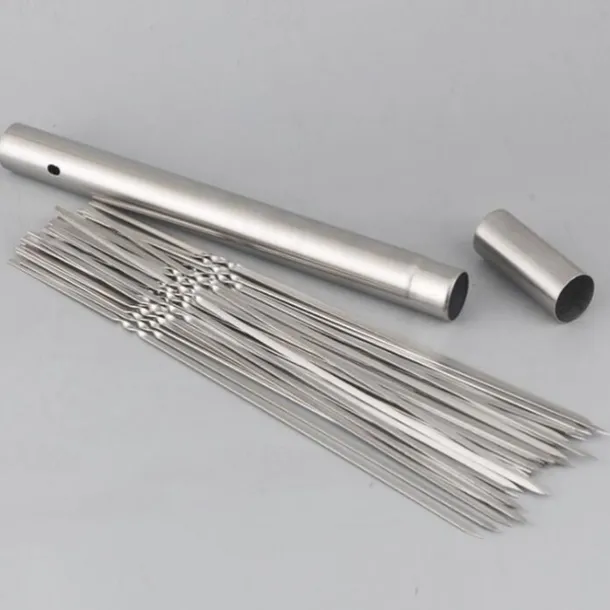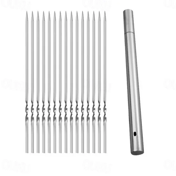Set of 15 pcs Skewers & 1 Tube Storage Stainless Steel Kabob Skewers Heavy Duty Grilling Skewers Barbecue Skewers Resuable BBQ Sticks for Shish Meat Shrimp Chicken Flat Skewers