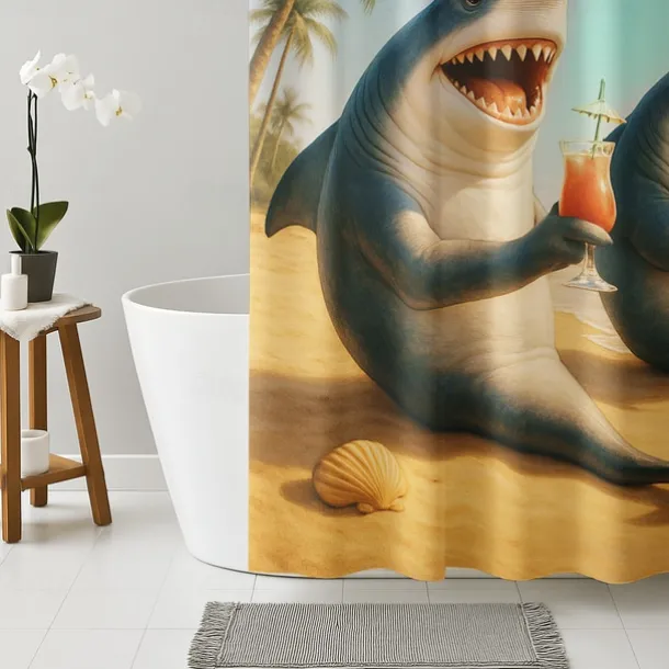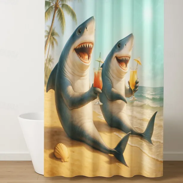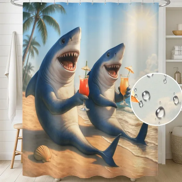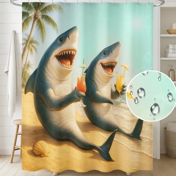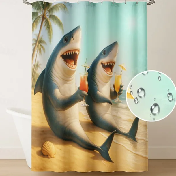 Shower Curtain with 12 Hooks 180cm*180cm(70″*70″) Polyester Washable Waterproof Pattern Bathroom Bathtub Decor Animal Sharks