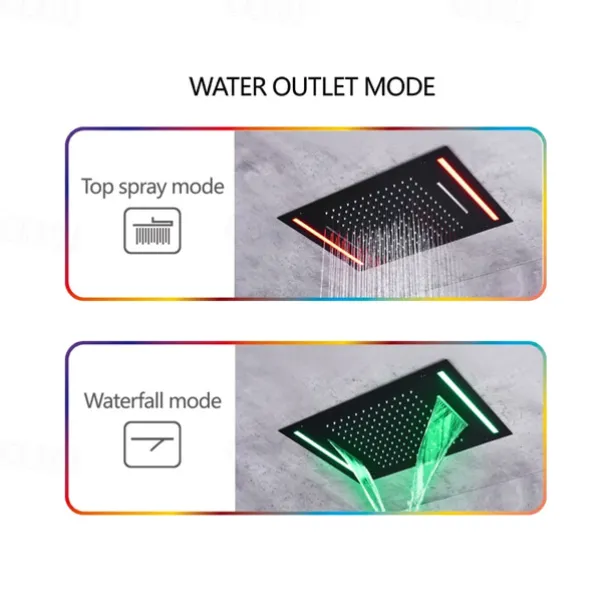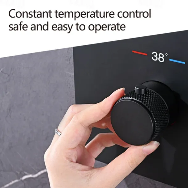 Style: Contemporary, Features: Rainfall Shower, Faucet Type: Rainfall Shower Head System, Thermostatic Mixer valve, Installation Type: Mount Inside, Valve Type: Brass Valve, Finish: Painted Finishes, Power Adapter Option: EU Adapter, UK Adapter, US Adapter,
