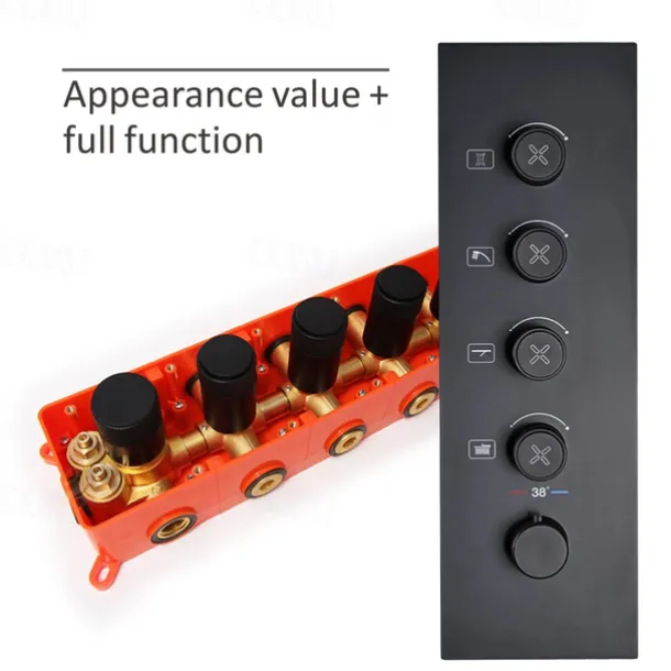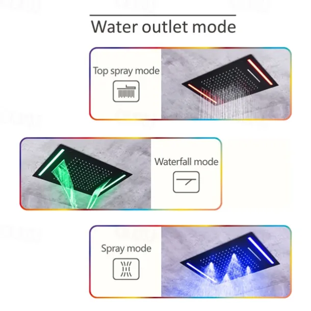 Style: Contemporary, Features: Waterfall, Rainfall Shower, Faucet Type: Rainfall Shower Head System, Thermostatic Mixer valve, Installation Type: Mount Inside, Valve Type: Brass Valve, Finish: Painted Finishes,