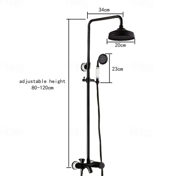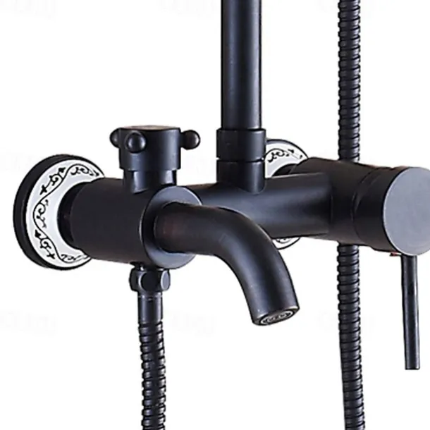 Shower Faucet,Shower System Set,Brass Rainfall Antique Oil-rubbed Bronze Shower System Ceramic Valve Two Handles Three Holes Bath Shower Mixer Taps with Hot and Cold Switch