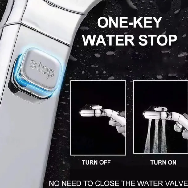 - Powerful pressure build-up: There are 4 gears, you can adjust the water pressure at will.And has a one-key water stop function.
