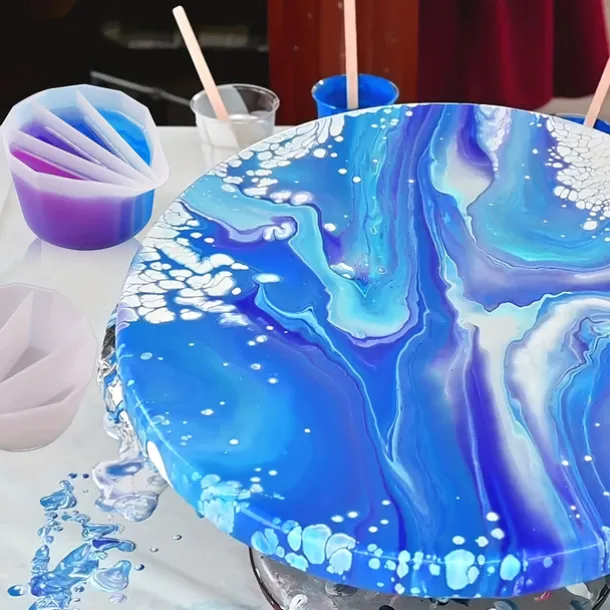 Silicone Split Cups 4 Pcs Thickened And Durable Resin Mixing Cups Fluid Art Acrylic Paint Pouring Drawing Resin Pouring DIY Make Resin Art Drawings With 2-5 Channels Divider Paint Pouring Supplies