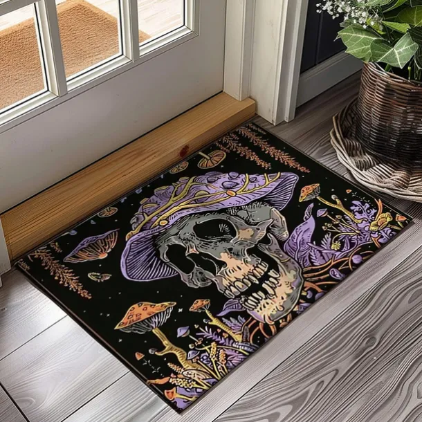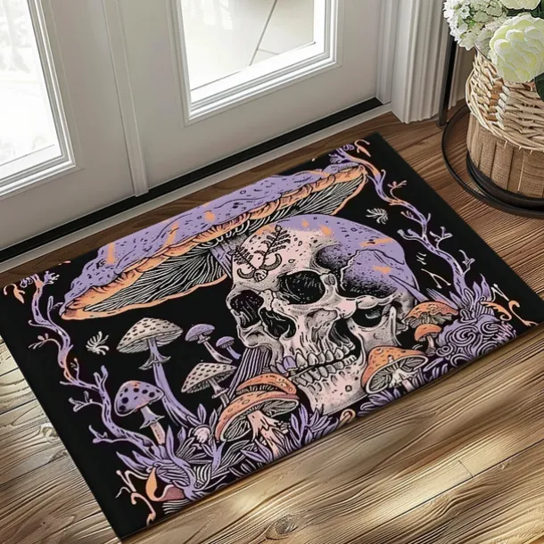 Skull Mushroom Doormat Floor Mats Washable Rugs Kitchen Mat Non-Slip Oil Proof Rug Indoor Outdoor Mat Bedroom Decor Bathroom Mat Entrance Rug