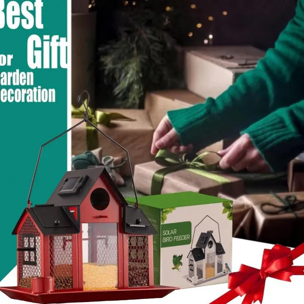 Solar Bird Feeders for Ourside,Bird House Squirrel Proof Feeder,Hanging Metal Mesh Wild Window Large Finch Cardinal Feeder Nest Houses,Bird Outdoors and Garden Decoration