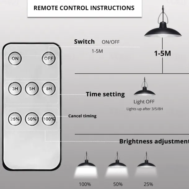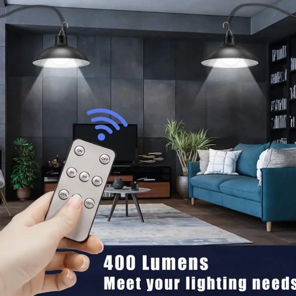 Solar Pendant Lights Outdoor Indoor String Lights Dimmable IP65 Waterproof Dual Head Solar Shed Light with 3M Cord and Remote Controller