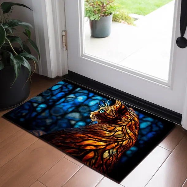 Stained Glass Cat Doormat Floor Mats Washable Rugs Kitchen Mat Non-Slip Oil Proof Rug Indoor Outdoor Mat Bedroom Decor Bathroom Mat Entrance Rug