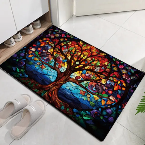 Stained Glass Tree Life Doormat Floor Mats Washable Rugs Kitchen Mat Non-Slip Oil Proof Rug Indoor Outdoor Mat Bedroom Decor Bathroom Mat Entrance Rug