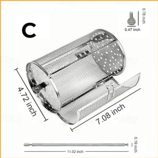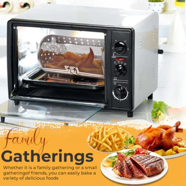 Stainless Steel Rotating Grill, 360-Degree Rotisserie for Even Cooking, Multifunctional Oven and Air Fryer Compatible, Easy to Clean BBQ and Party Essential