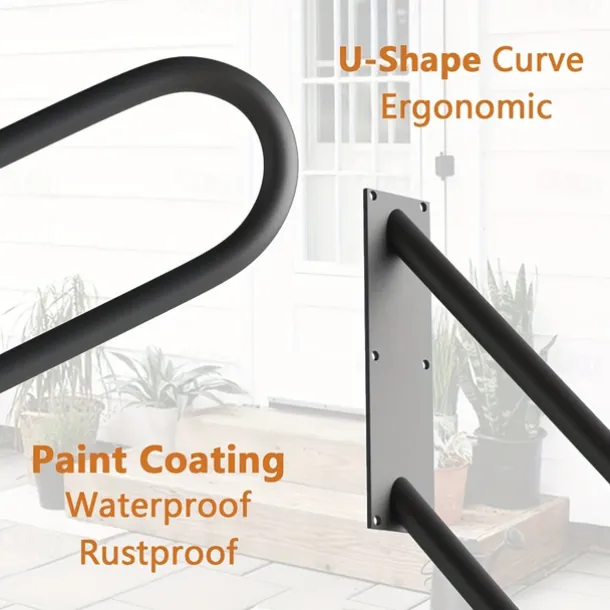 Sturdy U-Shaped Handrail for 1-3 Steps – Durable Varnished Finish, Indoor/Outdoor Black Stair Railing, Wall Mounted Step Support, Safety Assist Bar for Stairs, Bathroom, Porch, Garage – Easy