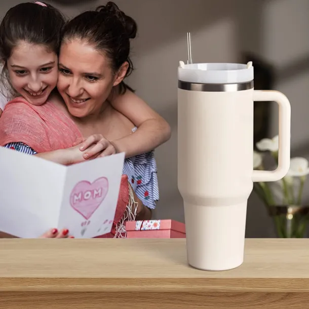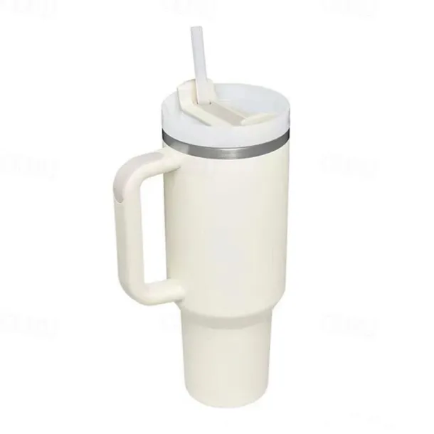 Summer Tumbler with Handle 40 oz and Straw Lid, 304 Stainless Steel Water Bottle, Travel Mug Insulated Tumblers Iced for Tea Coffee Gift, Large Capacity Car Cup with Straw