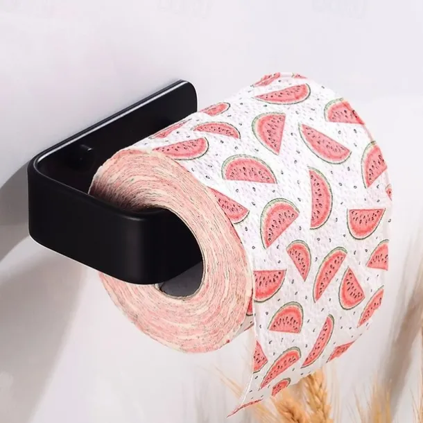 Toilet Paper Holder Aluminum Material Bathroom Wall Mounted Toilet Roll Paper Single Rod Black 1pc