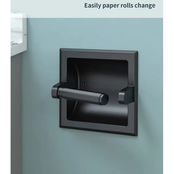 Toilet Paper Wall Mounted Holder Mounting Bracket with Black Recessed Toilet Paper Holder for Bathroom, Kitchen, Garage