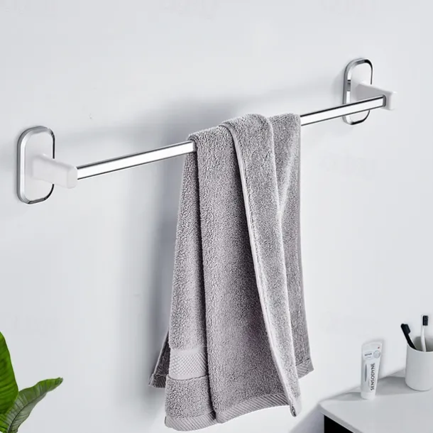 Towel Rack Stainless Steel Self-adhesive Bathroom Suction Cup Bathroom Hanger Toilet Hanger Plastic Wall Suction Single Bar Towel Bar Hole Free